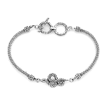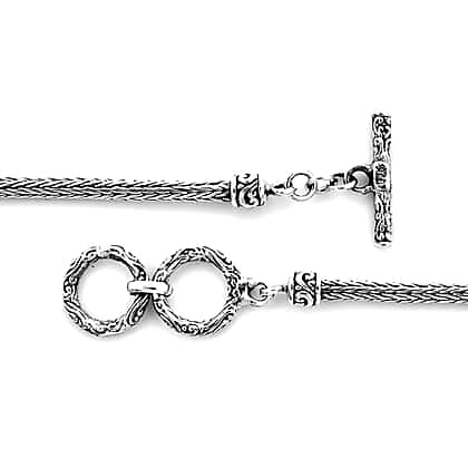 Royal Bali Collection - Sterling Silver Snake Tulang Naga Toggle Bar Bracelet (Size 7.5 with Extender), Silver wt 10.70 Gms