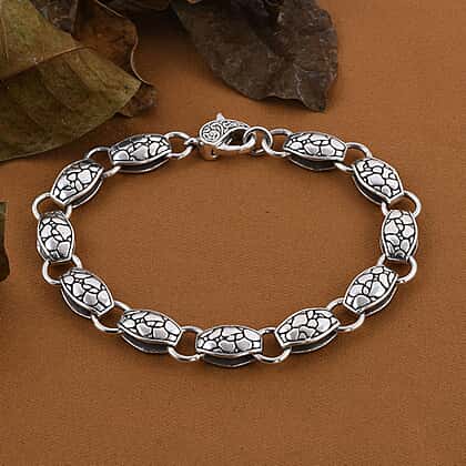 - Intricate design carved on a secure lobster clasp.