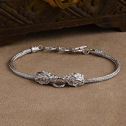Royal Bali Collection Sterling Silver Dragon Bracelet (Size 7 - 1 Ext) with T-Bar Clasp, Silver Wt. 12.38 Gms.