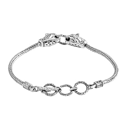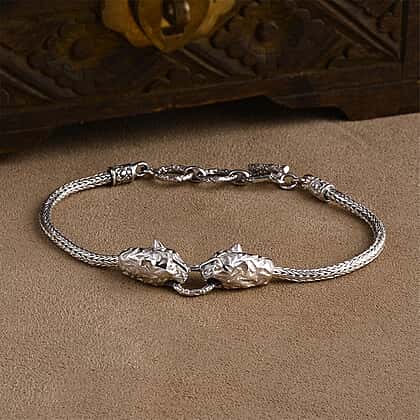 Royal Bali Collection Sterling Silver Panther Bracelet (Size 7 - 1 Ext) with T-Bar Clasp, Silver Wt. 11.63 Gms.