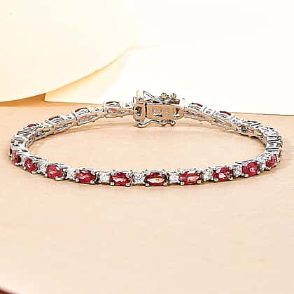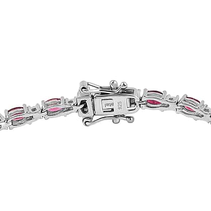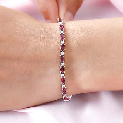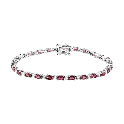 Rubellite with Natural Cambodian Zircon Tennis Bracelet (Size - 8) in Platinum Plated Sterling Silver 7.98 Ct, Silver Wt. 8.82 Gms