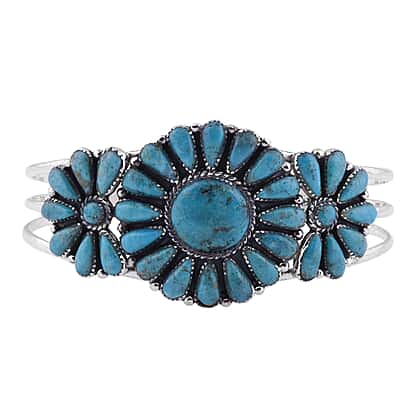 Santa Fe 13 Ct. Turquoise Floral Bracelet in Rhodium Plated Sterling Silver 7 Inches