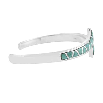 Santa Fe Collection 2 Ct. Turquoise Cuff Bangle (Size 6.5) in Sterling Silver Silver