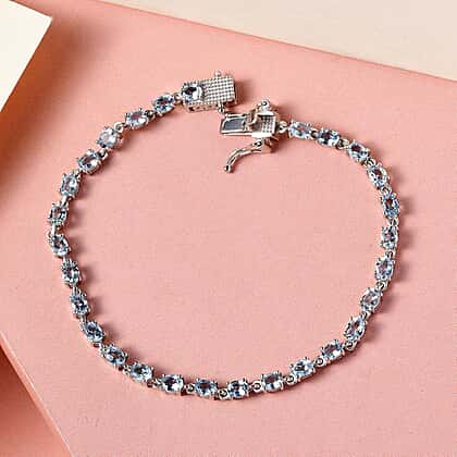 Santamaria Aquamarine Bracelet (Size - 8) in Platinum Overlay Sterling Silver 4.99 Ct.
