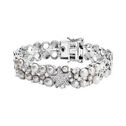 Presenting a bracelet that showcases a stunning play of texture and light, this bracelet presents a soft tapestry of pearls and shimmering stones arranged in a gentle, flowing cluster across the wrist. The design is anchored by a delicate star motif, giving it a touch of celestial charm while maintaining a refined, feminine presence. Crafted in rhodium overlay over 925 sterling silver, this bracelet offers durability and lasting shine, and its hypoallergenic nature offers comfort on sensitive skin. Finished in a sleek silver tone, it provides a dressed-up look that feels classic yet decorative, making it ideal for special occasions and thoughtful gifting.