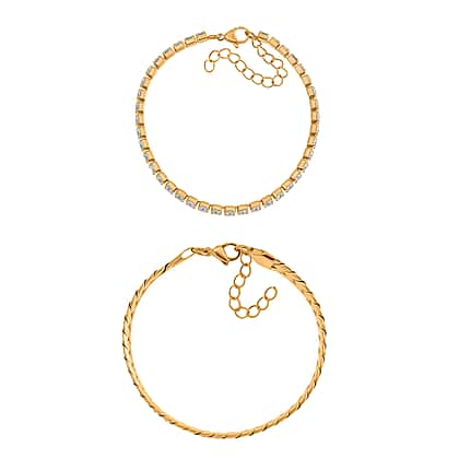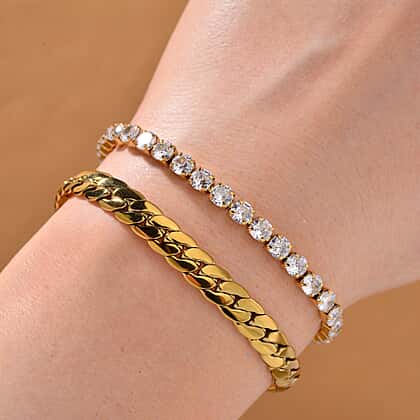 Set of 2 - White Cubic Zirconia Bracelet (Size - 7.5-2) & Curb Bracelet 10.00 Ct.