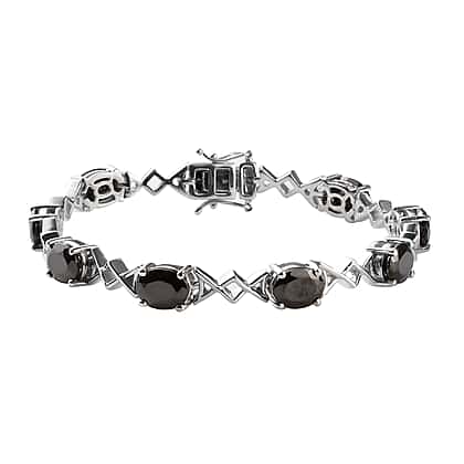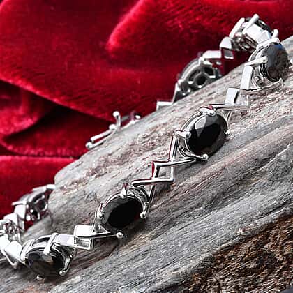 9.75 Ct Elite Shungite Link Bracelet in Platinum Plated Sterling Silver 18.50 Grams 7.5 Inch
