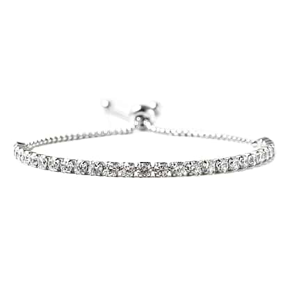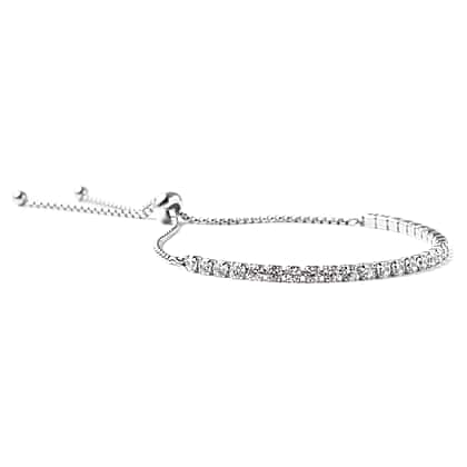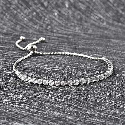 Simulated Diamond Slider Adjustable Bracelet Size 6-9 in Silver Tone