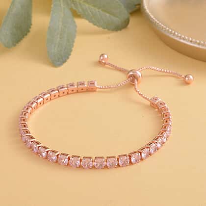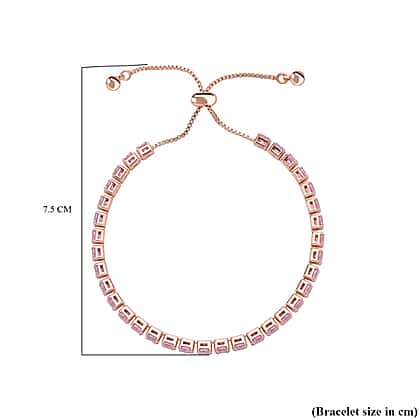 Simulated Pink Sapphire Adjustable Tennis Bolo Bracelet (Size - 6.5) in Rose Gold Tone