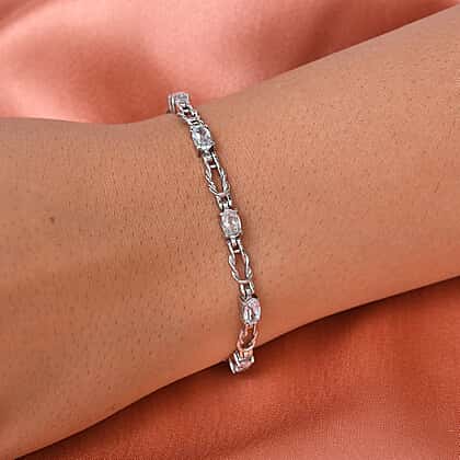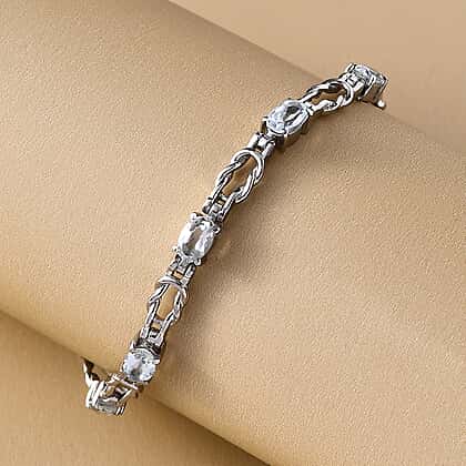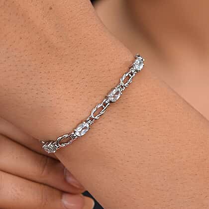 Made famous by Chris Evert, a professional tennis player from the USA, Tennis Bracelet is a piece of jewellery that makes you a stand out at any special occasion. A Bracelet with oval faceted cut Sky Blue Topaz, from Brazil, set in a four-prong setting, adding to its gleam. The 7.5-inch length ensures a secure fit, and the lobster clasp allows for quick attachment.