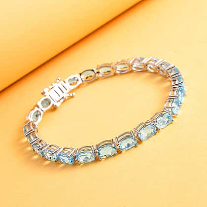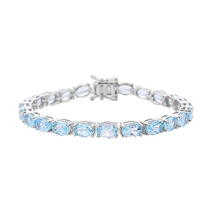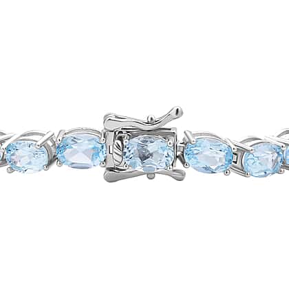 Elevate your fashion-forward look by alluring your beautiful wrist with the charm of this sky-blue topaz tennis bracelet, and enjoy the admiration of each onlooker. This bracelet's minimalist design and fine artwork will complete each of your outfits. Crafted using 925 sterling silver, experts took inspiration from the iconic tennis bracelet and prepared this stunning piece of daily wear for you. It features interconnecting stations, joined through tiny links. Each station is encrusted with an oval-faceted cut amethyst, secured with prongs, spreading its soothing hues. Get it for yourself or gift it to someone special.