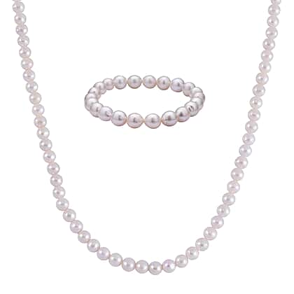 Special Deal - Set of AAA White Anhui Pearl Stone Stretchable Bracelet (Size 7-7.5) & AAA White Anuhi Pearl Necklace With Magnetic Clasp (Size - 20) in Rhodium Overlay Sterling Silver 170.0 Ct.