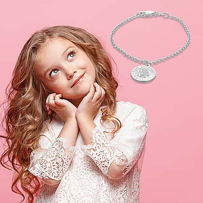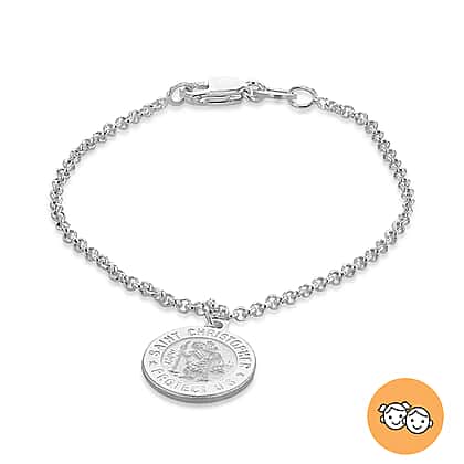St Christopher Disc Charm Child Bracelet in Sterling Silver Size 5.5 Inch