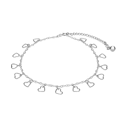Sterling Silver Multi Open-Heart Anklet 11 Inch