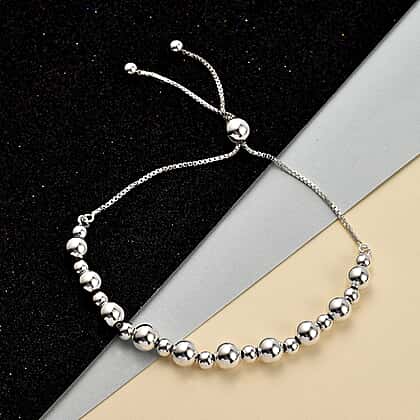 Sterling Silver Ball Adjustable Slider Bracelet (Size - 6.5 To 9.5), Silver Wt. 6.30 Gms