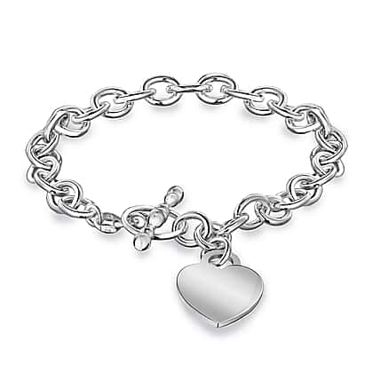 Sterling Silver 16mm x 2.5mm Heart Tag T Bar Belcher Bracelet 7.5 Inch