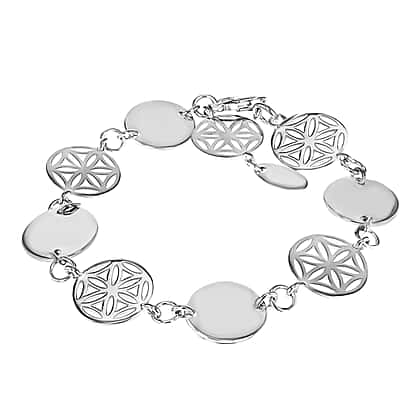 Sterling Silver Rhodium Plated Daisy Disc Design Bracelet 7.5 Inch