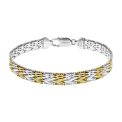 Sterling Silver Two Tone Chevron Bracelet 7.5 Inch