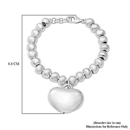 Designer Inspired Beaded Bracelet with Heart Charm in Sterling Silver