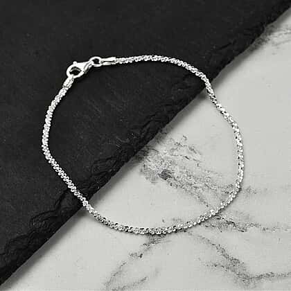 Sparkling like fireworks, the intertwined rectangular links of this Sterling Silver Margarita Bracelet infuse your look with a dose of instant glamour. The rectangular links are connected in a twisted design, making it a unique accessory. For an everyday look, wear the size 7.5 bracelet by itself, or stack it with other bracelets for a dressy look.
