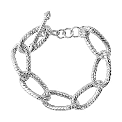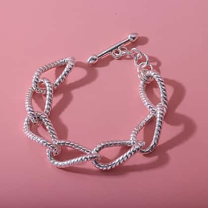 Durable enough for everyday wear, this stunning sterling silver pave bracelet makes an exceptional addition to your jewellery collection. Elegantly crafted in 18.5 grams of sterling silver, the bracelet features open links with a textured finish. Each link is polished to radiate a sparkling shine. A T-bar clasp adds to the stylish appeal of the bracelet. A staple piece in your jewellery collection, this bracelet will complement any outfit.