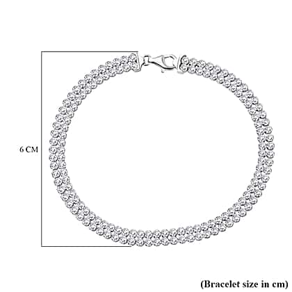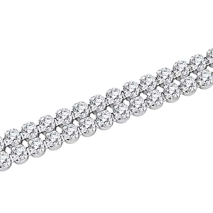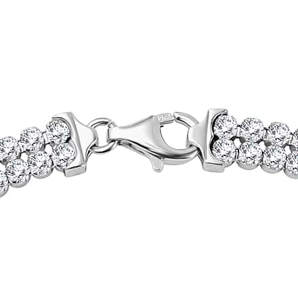 Sterling Silver Rhodium Plated 2mm Round CZ Double-Row Tennis Bracelet 7.5 Inch