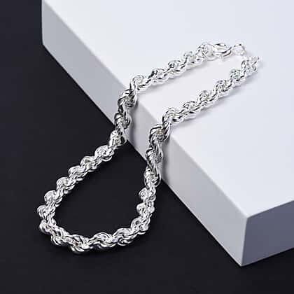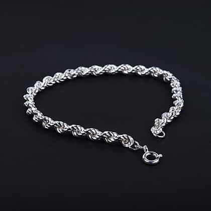 Rope Chain Bracelet in Platinum Plated 925 Sterling Silver 7 Inch