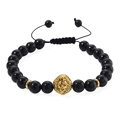 Natural Shungite Lion Charm Bracelet (Size 6.5 - 9 Adjustable) with Oxidised Yellow Gold tone 75.00 Ct.