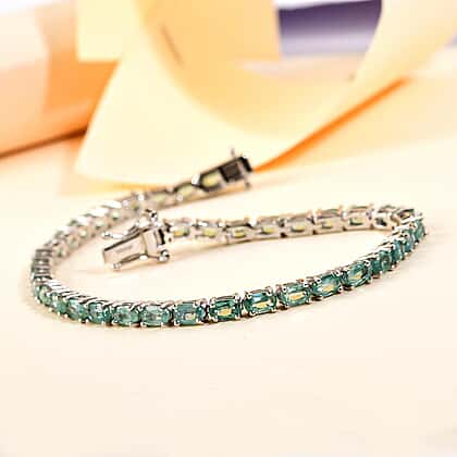TJC Launch - Natural Green Kyanite Bracelet (Size - 7.5) in Platinum Overlay Sterling Silver 12.04 Ct, Silver Wt. 9.08 Gms