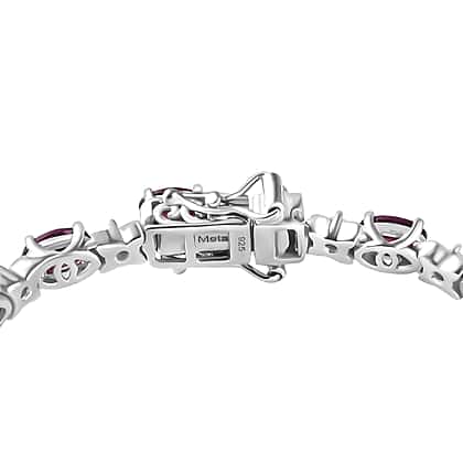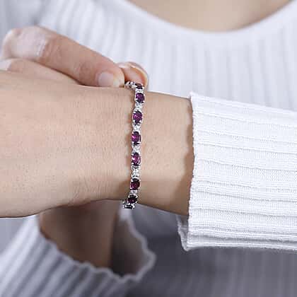 A rare find, the Natural Ember Garnet and Natural Zircon Tennis Bracelet looks exceptional in Rhodium overlay Sterling Silver. The bracelet gets its bejewelled look from the ember garnets set in a row. The white zircon accents bring a diamond-like radiance to the bracelet enhancing its luxurious style.