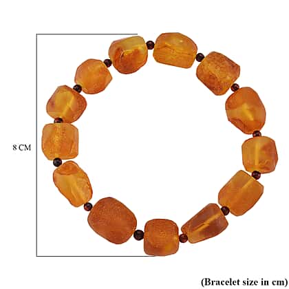 Add a warm, earthy charm to your look with this stunning 60 ct. amber stone bracelet. Crafted from natural amber beads in a rustic matte finish, each piece features organic shapes and golden hues that reflect light beautifully. The bracelet stretches comfortably to fit most wrists, making it easy to wear throughout the day. Amber is admired for its natural origin and gentle glow, offering both aesthetic appeal and a sense of grounding energy. Whether layered with other bracelets or worn alone, this timeless accessory effortlessly complements both casual and elegant outfits with its unique texture and golden warmth.