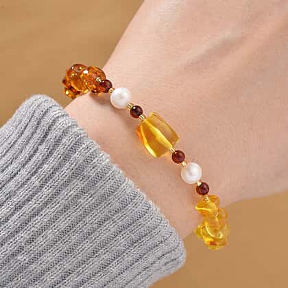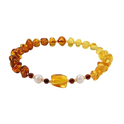 Multi Colour Amber, White Fresh Water Pearl Stone Bracelet (Size - 7 - 7.5 Stretchable) 25.00 Ct.