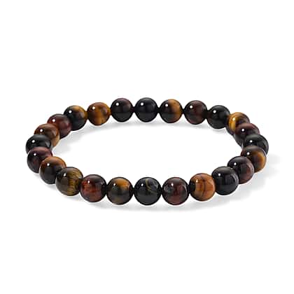 Tucson Find- Multi Color Tigers Eye Beads 8 MM Bracelet (Size - 7.5 Stretchable) 98.00 Ct.