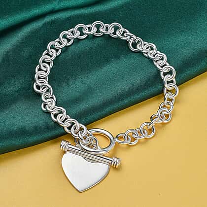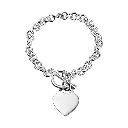 Vicenza Closeout - Sterling Silver Heart Charms Belcher Bracelet (Size - 7.5), Silver Wt. 21.80 Gms