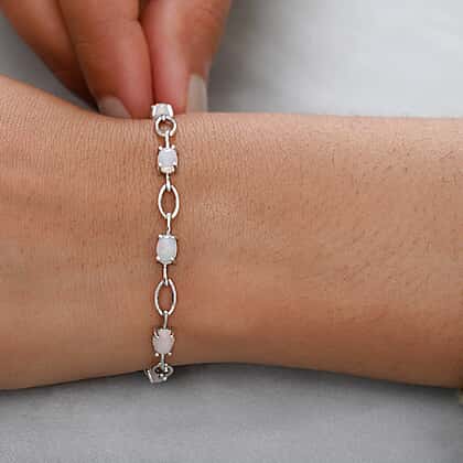 Wegel Tena Opal Link Bracelet (Size 8) in Platinum Overlay Sterling Silver 3.00 Ct.