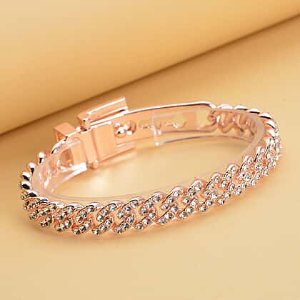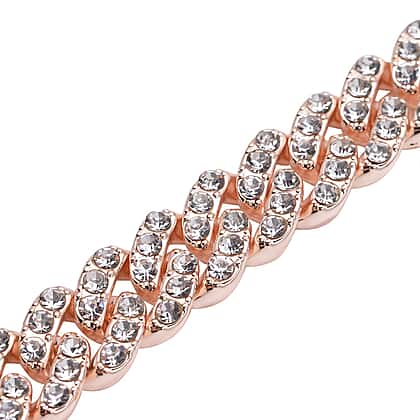 This curb bracelet will accent your everyday and formal dressing with its effortless elegance. The bracelet is studded with White Austrian crystals and comes with fashionable buckle closure. Rose gold-tone enhances the beauty of this bracelet with its chic pink finish. The high-quality white crystals replicate the sparkle of diamonds and lend a bling effect to your ensemble.