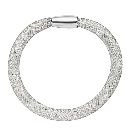 White Austrian Crystal Bracelet (Size - 8.5) in Silver Tone