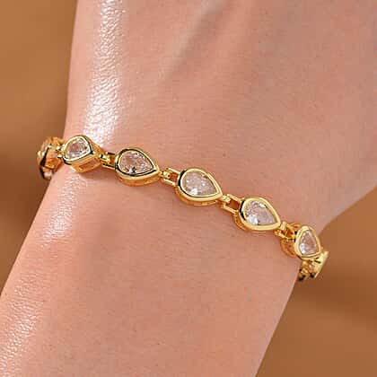 White Cubic Zirconia Bracelet (Size - 7.25) Pure Yellow Brass 15.00 ct