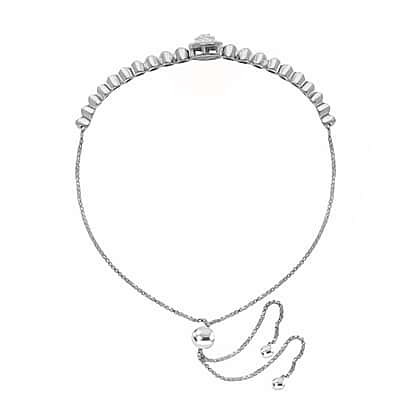 White Diamond Bracelet (Size - 6.5 To 9.5) Adjustable in Platinum Overlay Sterling Silver 0.24 Ct.