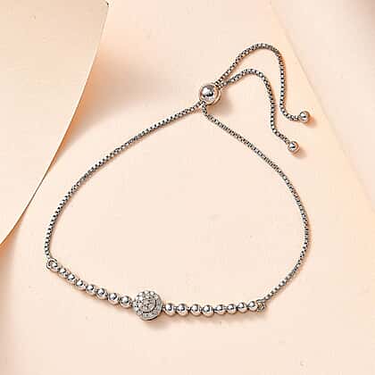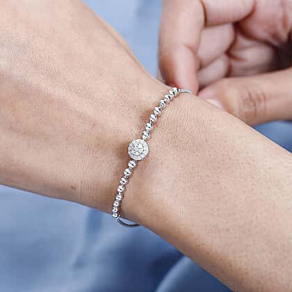 Adorned with the sparkle of twenty diamonds, this White Diamond Fancy Bracelet in Platinum Overlay Sterling Silver is a constellation wrapped around your wrist, each gem a star set against the night sky's silver gleam. The solid silver beads that flank the diamond-studded centrepiece are like celestial bodies in orbit, each contributing to the bracelet's symphony of light. The stylish bead clasp is a seamless fusion of form and function, ensuring that this galaxy of dreams remains a part of you.