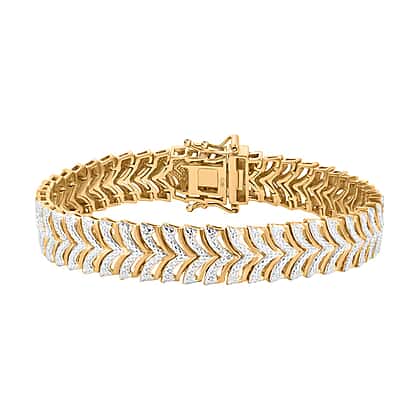 White Diamond Bracelet (Size - 7.5) with Lock Box in Yellow Gold Flash & Silver Plating