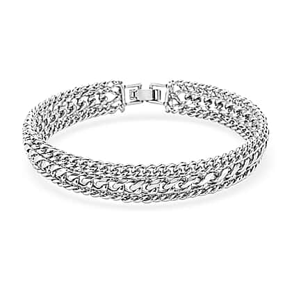 Woven Link Chain Bracelet (Size - 7.5) in White Tone
