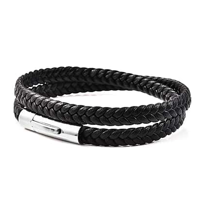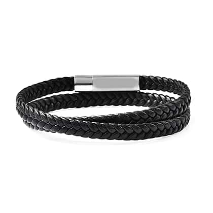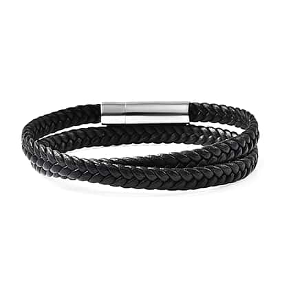 Braided Microfibre Leather Bracelet (Size 7.75) with Magnetic Lock in Stainless Steel