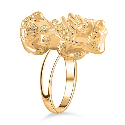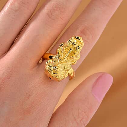 Pixiu Ring in Yellow Gold Overlay Sterling Silver. Featuring a Pixiu design, this ring offers a cultural insight into Chinese mythology, where Pixiu is believed to bring wealth and good fortune. Intricate detailing by skilled artisans showcases the mythical creature’s features, bringing it to life in a wearable form.