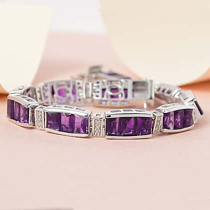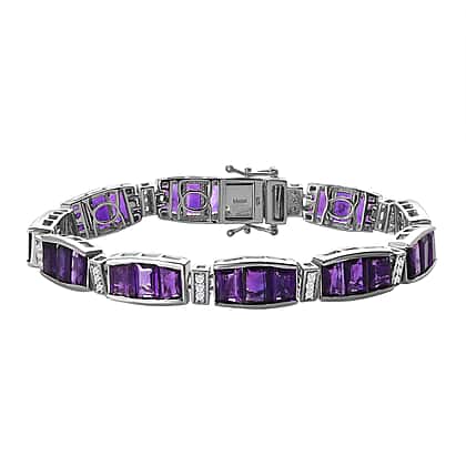 Brejinho Amethyst and Natural Zircon Bracelet (Size - 7) in Platinum Overlay Sterling Silver 23.28 Ct, Silver Wt. 18.72 Gms