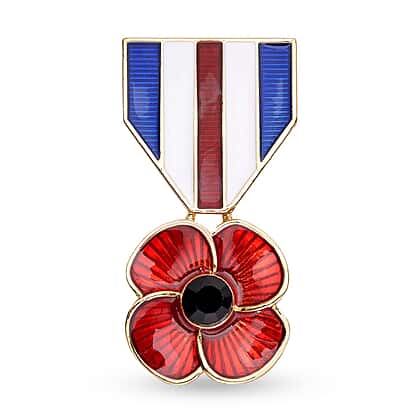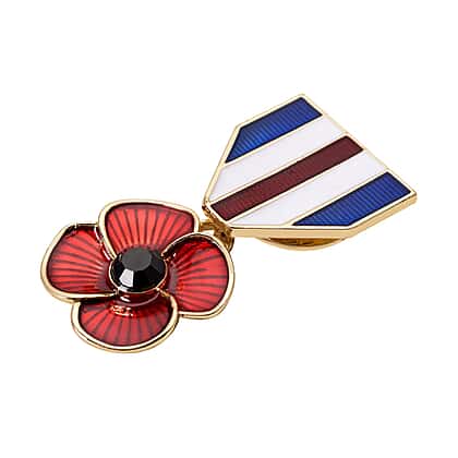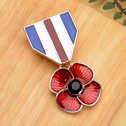 Black Crystal Enamelled Poppy Brooch in Gold Tone