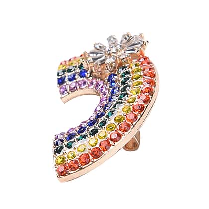 Multi Colour Austrian Crystal and Simulated Diamond Rainbow Brooch with Flower