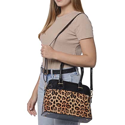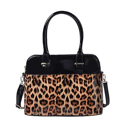 Brown Leopard Print Handbag with Detachable and Adjustable Shoulder Strap