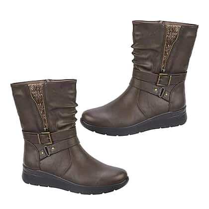 Stay effortlessly comfortable in the Shoes by Emma Catalina Ankle Boots in Brown, a perfect blend of warmth, style, and practicality. These boots feature a soft fleecy lining and knitted insert for extra cosiness, while the inside zip ensures easy fastening. The lightweight design and low wedge heel offer everyday wearability without compromising on style. Finished with buckle detailing and a sturdy cleated sole for enhanced traction, they’re ideal for cooler days. Pair them with jeans or skirts for a timeless, relaxed look that works day through night.