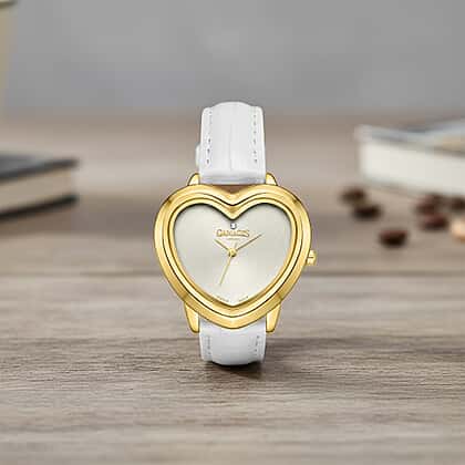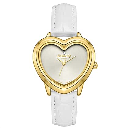 Gamages Of London Limited Edition Sweet Heart Ladies Swiss Movement Diamond Watch With Leather Strap - White